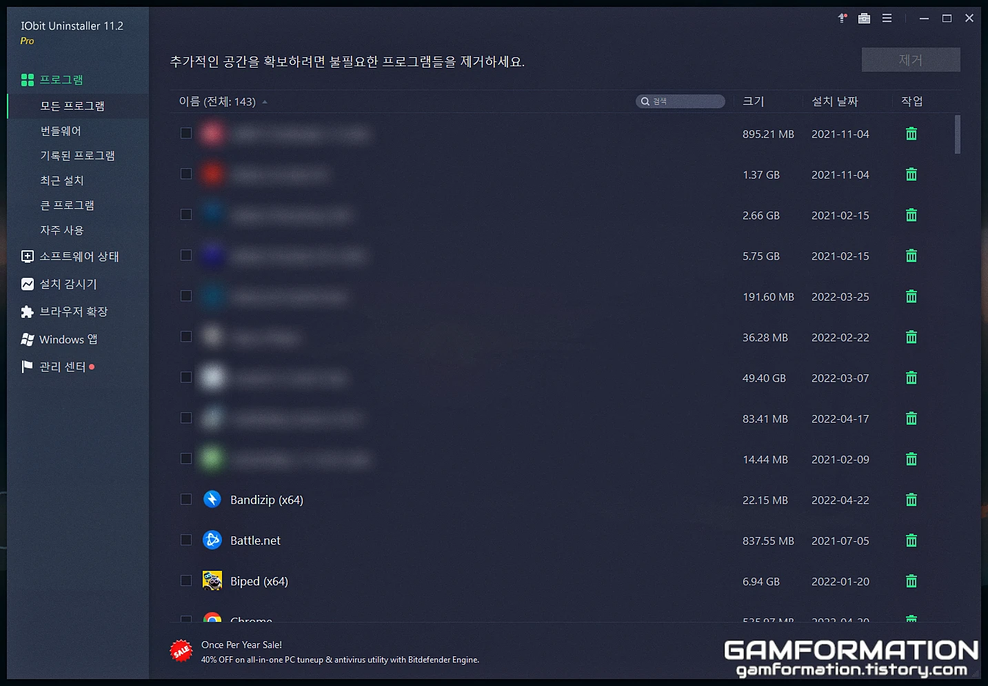 개인적으로 제어판의 프로그램 제거 기능은 설치된 프로그램을 깔끔하게 지워주지 못한다고 생각하기에, 가능하다면 완전 삭제 프로그램을 주로 사용하는 편이다.