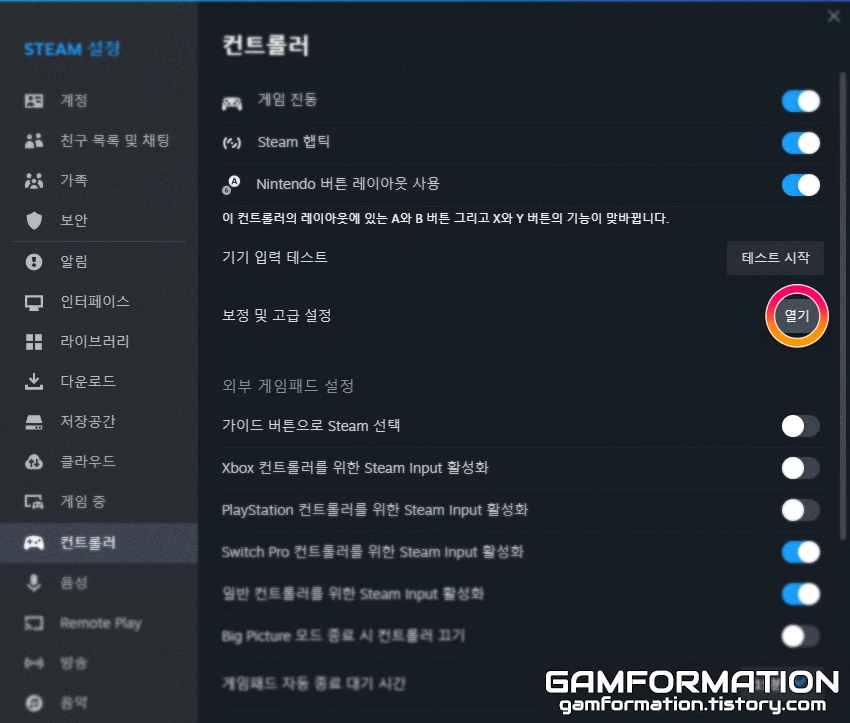 이제 각 방법들에 대해 설명을 진행해 볼 텐데, 진행하기에 앞서 스팀에 컨트롤러를 인식시키는 과정이므로 이미지처럼 미리 스팀은 켜놓도록 하자.