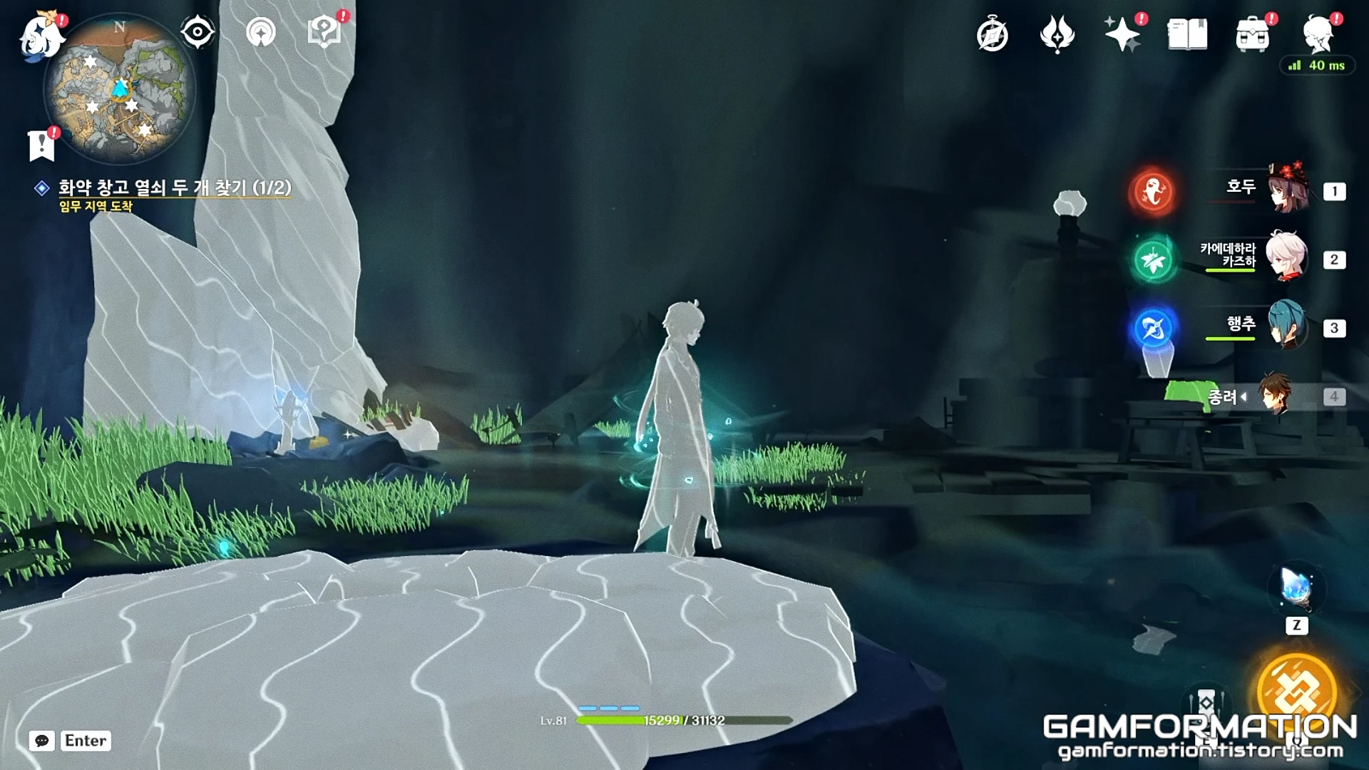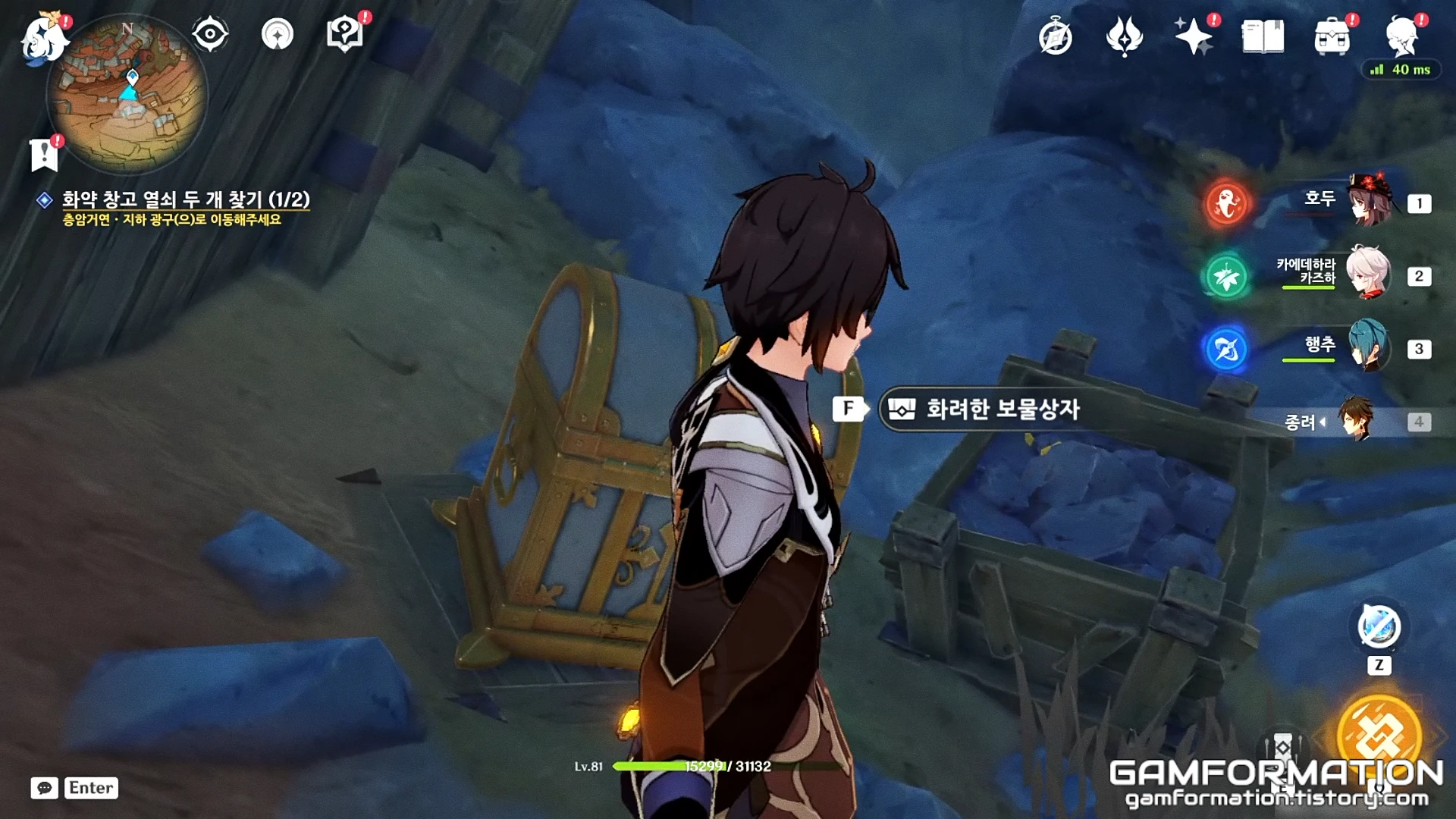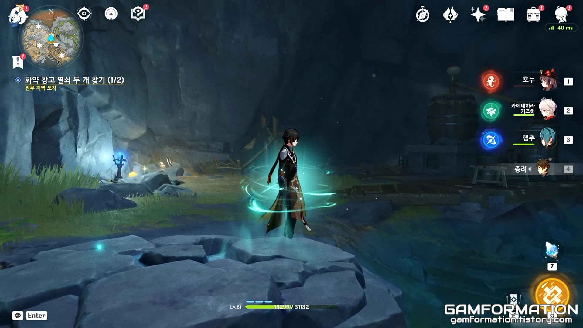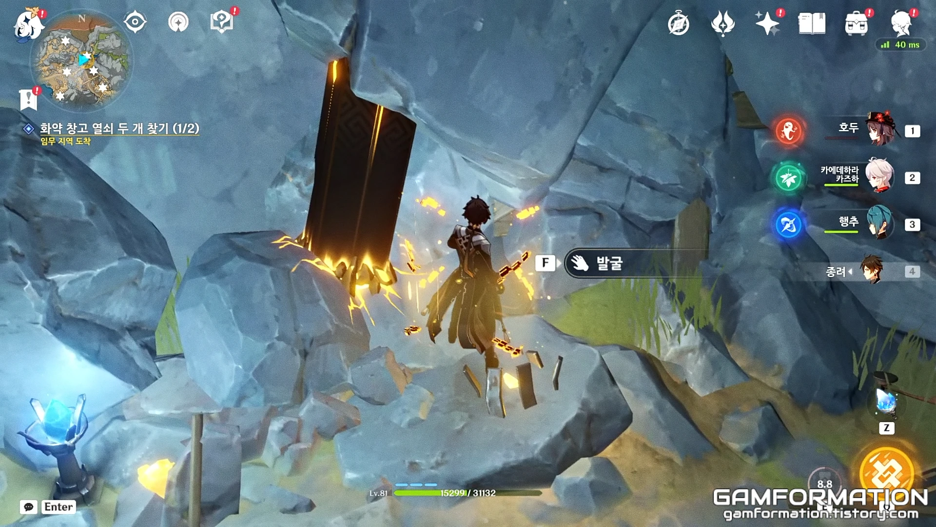 원신에서 월드 임무인 구천의 바위 조각 퀘스트를 진행하다 보면 막혀있는 통로를 뚫기 위해 개산포를 이용하기로 하게 된다. 그런데, 포는 있지만 포탄이 없어 포탄이 들어있는 창고로 들어가야만 하게 되는데, 이때 필요한 화약 창고의 두 열쇠를 찾는 방법에 대해 알아보고자 한다.