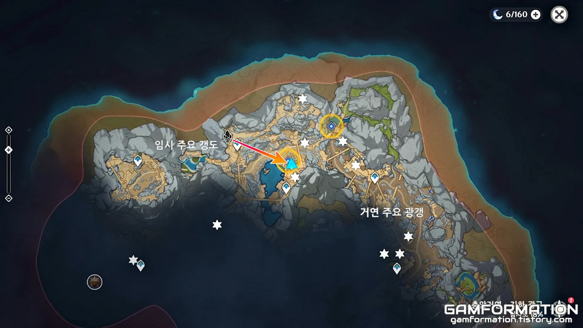 먼저, 첫 번째 열쇠 위치로 이동해보자. 첫 위치의 경우, 구천의 바위 조각 퀘스트를 받은 지점부터 아래쪽으로 뛰어내리면 쉽게 도달할 수 있기에 도달하기가 크게 어려운 장소는 아니다.