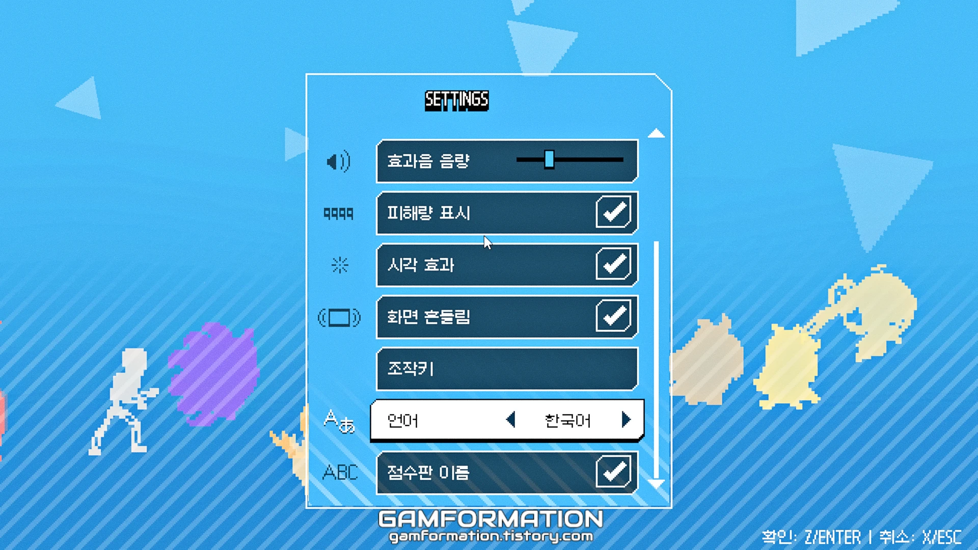 키보드의 Z 또는 엔터키를 눌러주는 것으로 한국어로 언어의 변경이 가능해진다.